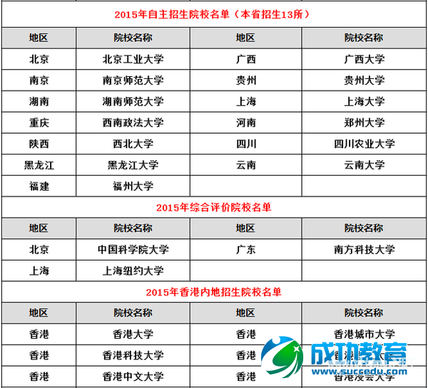 提醒广大考生和家长注意,已经临近2月底,各高校自主招生简章即将发布。届时考生和家长可及时关注教育部阳光高考信息平台、各高校本科招生网、各省市教育考试院、自主招生在线网站获取最新的自主招生资讯和政策。同时,本文特将2015年开展综合评价的院校名单以及开展内地招生的重点港校名单也一并进行汇总,方便广大考生和家长更有针对性查找信息资讯。