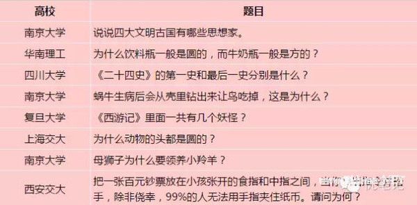 最后把近几年部分高校的部分面试问题汇总起来分享给大家: