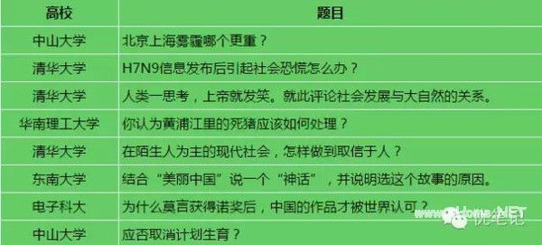 虽然有些高校在面试时题目出得花样百出,但这毕竟只是少数,因为他的特别才引起了人们关注。其实,对高中课堂上所学的知识的考察和运用才是面试的重要内容,这些试题可能就是高中平时考试中经常接触到的试题,例如: