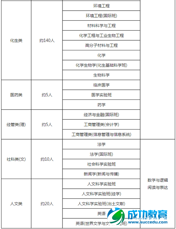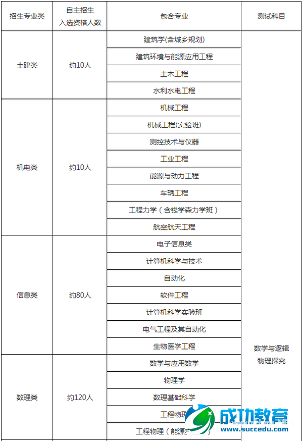 2015年我校自主招生录取人数不超过教育部核准的自主招生计划;各招生专业类自主招生入选资格人数及对应的初试测试科目如下: