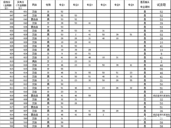 考生填报及试录取情况如下(有级差):
