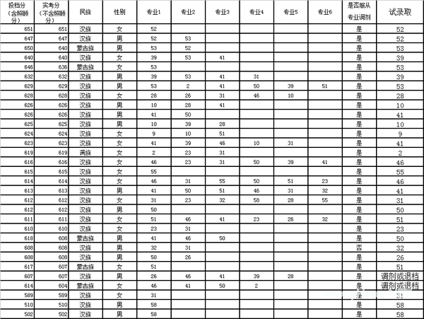 考生填报及试录取情况如下(无级差):