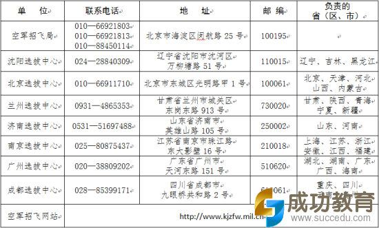 空军招飞局及各选拔中心联系电话