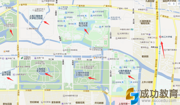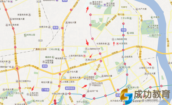 复旦大学、同济大学、上海财经大学、上海理工大学、上海体育学院、上海水产大学、上海电力大学、上海大学学等,上海交通大学、华东师范大学(这俩在闵行,不过还好了,有地铁、公交等。)