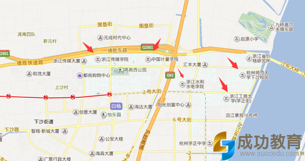 杭州电子科技大学、浙江理工大学、杭州职业技术学院、浙江传媒学院、中国计量大学、浙江水利水电学院、浙江财经大学、浙江工商大学、浙江经济职业技术学院、浙江金融职业学院、杭州师范大学,(浙江大学在那边,离这里较远。)