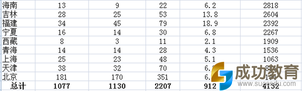 注:表中数据来源于阳光高考信息平台,各省市招生考试院官网,经整理后得出;