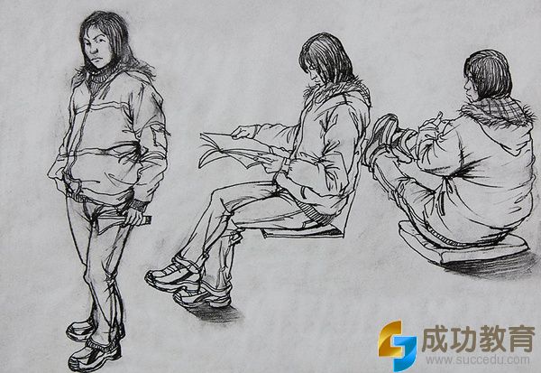 从结构来看,有些考生对人体结构不了解;存在构图问题,不知如何控制画面;衣纹组织不当,哪些衣纹该画,哪些又不该画,有些考生不清楚;大的动态关系不明了;头部、手部、脚部欠生动;线条草率、油滑等。所以速写一定要要勤加练习才可以画的更好!
