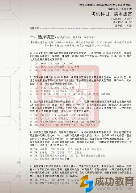 解析丨央美实验艺术2015年美术鉴赏考试分析