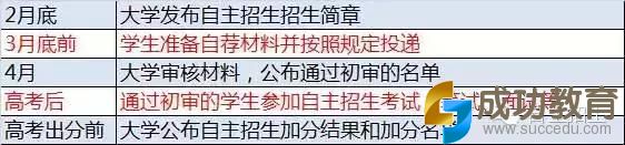 自主招生为大学公开发布信息,学生自愿报名参加,全程公开的招生形式。几个重要时间节点如下:
