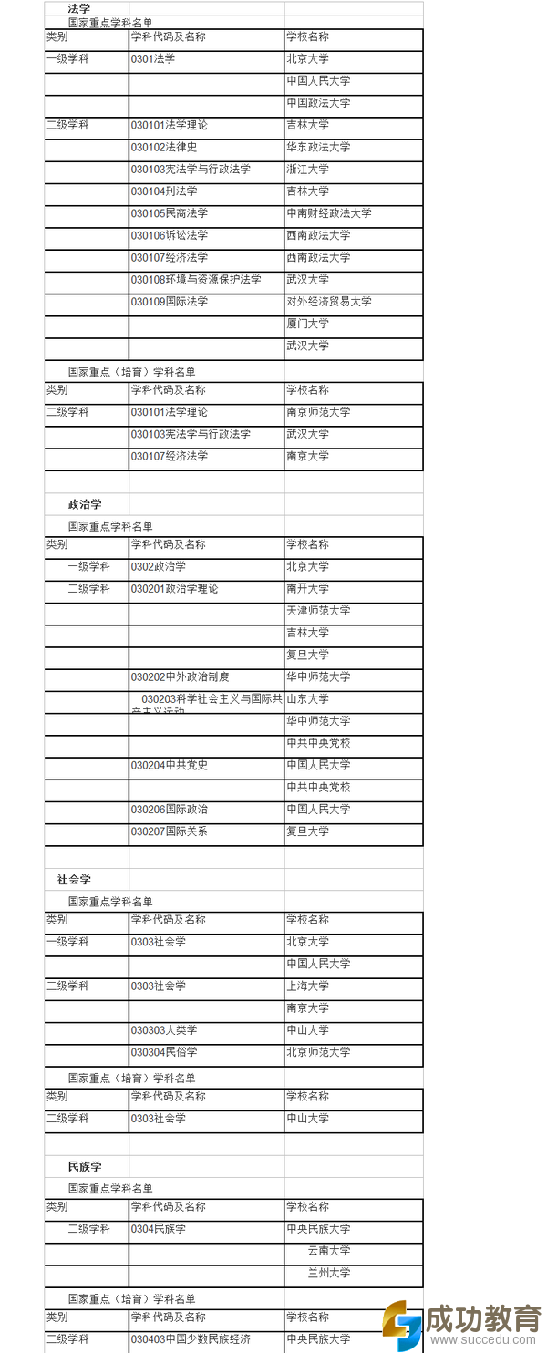 日前国务院发文《统筹推进世界一流大学和一流学科建设总体方案》,985、211都是曾经要建设的世界一流大学大家都知道自不必说了,兔子妈妈和大家一起回顾一下前些年我国在哪些院校重点建设了哪些一级学科和二级学科,今天先看一下人文社科类的法学、政治学、社会学、民族学。