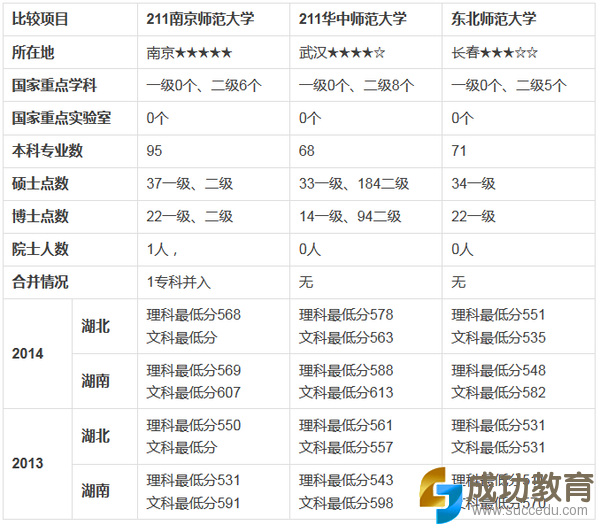 从表中可以看出,三校实力相当,但是东北师范大学分数最低,而且不是低三分五分,南京师范大学、华中师范大学高于东北师范大学的分数至少十几分,最多的达到40分。同样档次的学校,分数这么低,可谓分数不高同学的首选,特别是有心投身教师行列的同学,特别要强调一下的是,东北师范大学的最低录取分数不少都是免费师范生的分数,免费师范生毕业后是直接分配工作的,但是可能是一些基层条件比较差的学校,如果农村同学或要求不高的同学报考免费师范生是不错,既省了学费,又不用发愁工作,但是要到基层,所以大家慎重考虑选择。