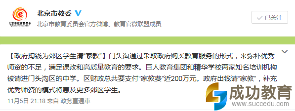 门头沟区对政府掏钱为学生请“家教”惹争议的回应