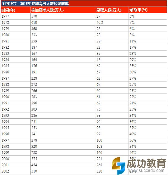 1977-2015全国高考人数及录取率分析是一篇关于高考复习,高考学习方法,高考资源,高考志愿填报等的高考资讯!是1977-2015全国高考人数及录取率分析的核心关键词!我们刊发文章的目的在于信息传播!文章由高考圈白聪推送编辑整理!成功教育网,专注于家庭教育和课外辅导领域!
