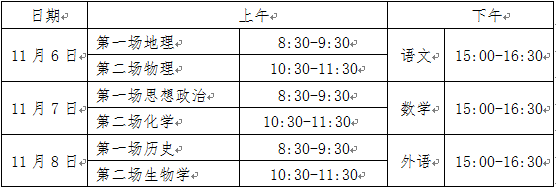 2020年湖北省普通高中学业水平合格性考试(下称“学考合格考”)定于11月6日至8日举行,现将考试安排和报名工作有关事项公告如下:一、考试安排(一)考试时间:2020年11月6-8日。(二)开考科目:语文、数学、外语、物理、化学、生物学、思想政治、历史、地理9门。(三)考试时长与卷面分值:语文、数学、外语各科考试时长均为90分钟;物理、化学、生物学、思想政治、历史、地理各科考试时长均为60分钟;各科目卷面满分值均为100分。(四)具体安排:备注:外语科目语种为英语、俄语、日语、德语、法语。二、报名对象、条