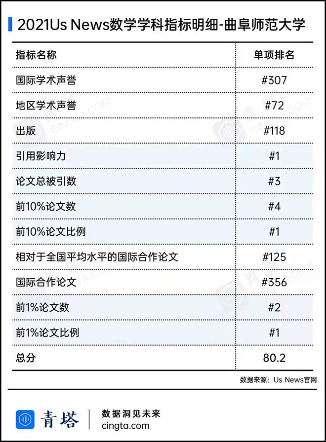 US News世界大学学科排名公布,曲阜师范大学数学排名超过清北复交