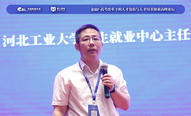 会上,河北工业大学招生就业中心主任任福战围绕高校招生工作的改革与举措作主题分享。他认为,高考综合改革是教育综合改革的关键突破口,处于教育改革“重中之重”的核心位置,而考试招生制度改革是促进教育发展的关键环节之一。面对高考改革,高校招生应主动采取措施,进行深层次的改革实践,做好高中与大学的协同和联合教育,调整培养方案,实行差异化培养,补充高中课程的短板。
