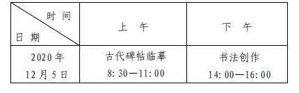 2020年12月5日8:30—10:30;笔试考点设在各省辖市和省直管县(市)招生考试机构所在地,具体由市(县、区)招生考试机构通知。