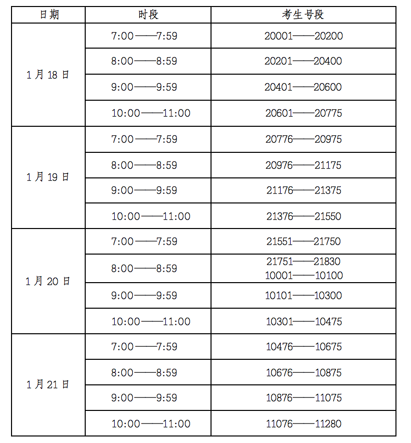 2.考生必须严格按规定时间到场,如未在规定时间到场,视为弃检。