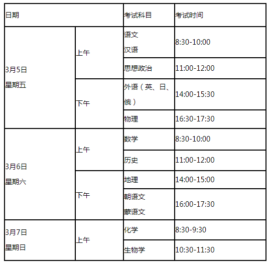 根据辽宁省疫情防控最新形势和各普通高中学校春季开学时间,经研究,定于2021年3月5日至7日举行我省2021年1月普通高中学业水平合格性考试。考试具体时间安排如下:辽宁省高中等教育招生考试委员会办公室2021年2月20日