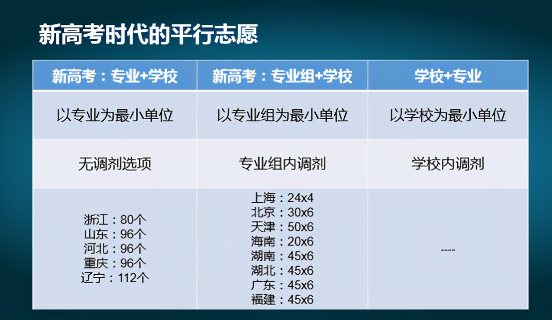 的确,在新高考改革的浪潮下,参与新高考的省份选择了用更长的志愿清单来弥补新政策给考生和家长带来的不安感,第一批实施新高考的浙江省可以填报80个“专业+学校”的组合,第二批参与的天津市,则允许每个考生在志愿填报中可以选择填报50个专业组,每个专业组最多填写6个专业志愿和一个是否服从调剂志愿。