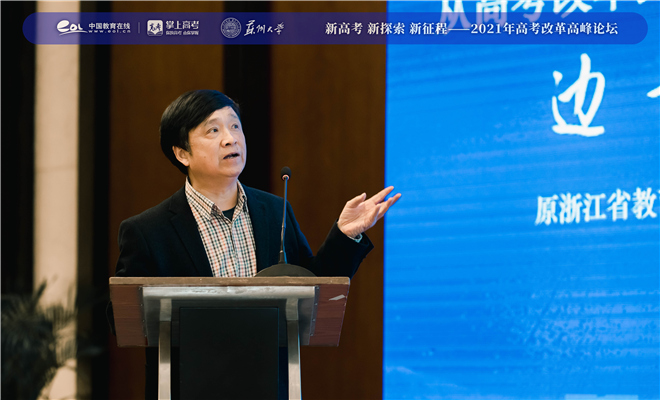 论坛上,原浙江省教育考试院副院长边新灿做了《从高考改革到教育评价改革》的主题报告。边院长首先详细介绍了,浙江新高考改革方案的内容及特色,并介绍了新中国成立70年高考作为教育评价制度的演进和改革过程。