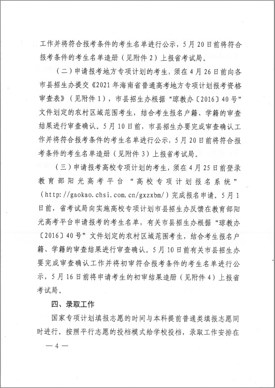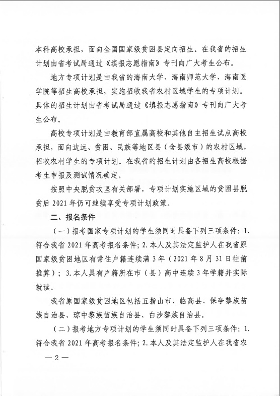 海南:2021年重点高校在琼实施专项计划工作的通知发布