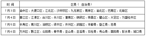 以上时间安排请考生根据本人户籍所在地对应区县(自治县)按时参加,户籍所在地为重庆市以外的按学校所在地对应区县(自治县)按时参加。凡在规定时间内未参加体格检查的考生,填报的军队院校志愿作自动放弃处理。