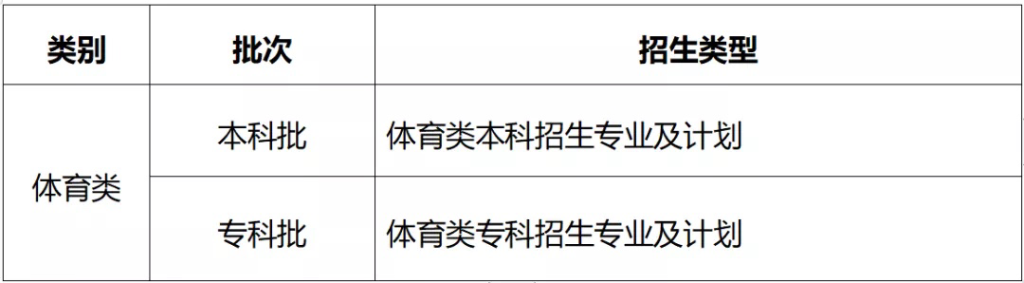 体育类:仅设置本科批与专科批两个批次