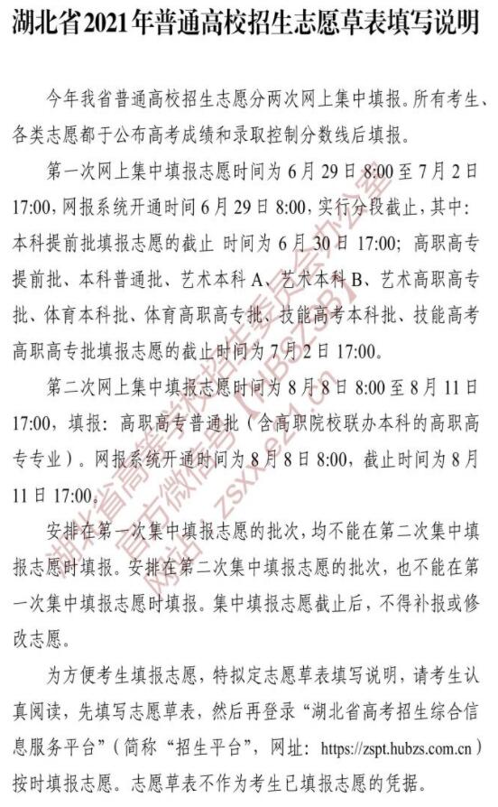 湖北省2021年普通高校招生志愿草表及填写说明:下载(点击):湖北省2021年普通高校招生网上填报志愿草表