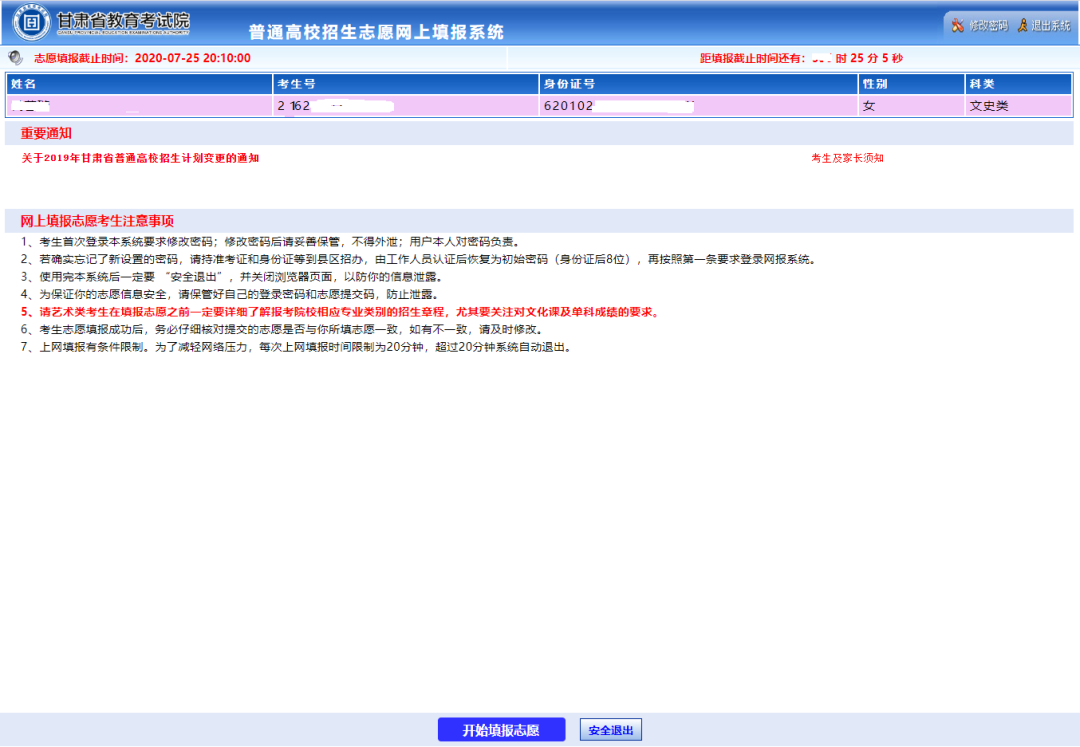 10、凡没有使用“志愿提交密码”,直接点击“安全退出”按钮的考生,志愿信息将不会保存。