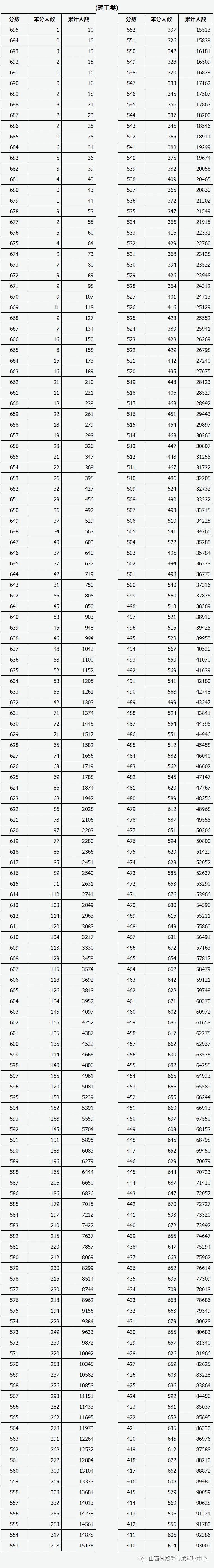 2021年山西省普通高考成绩一分一段统计表—理科各地高考分数即将陆续公布,查看你的分数能上哪些大学?