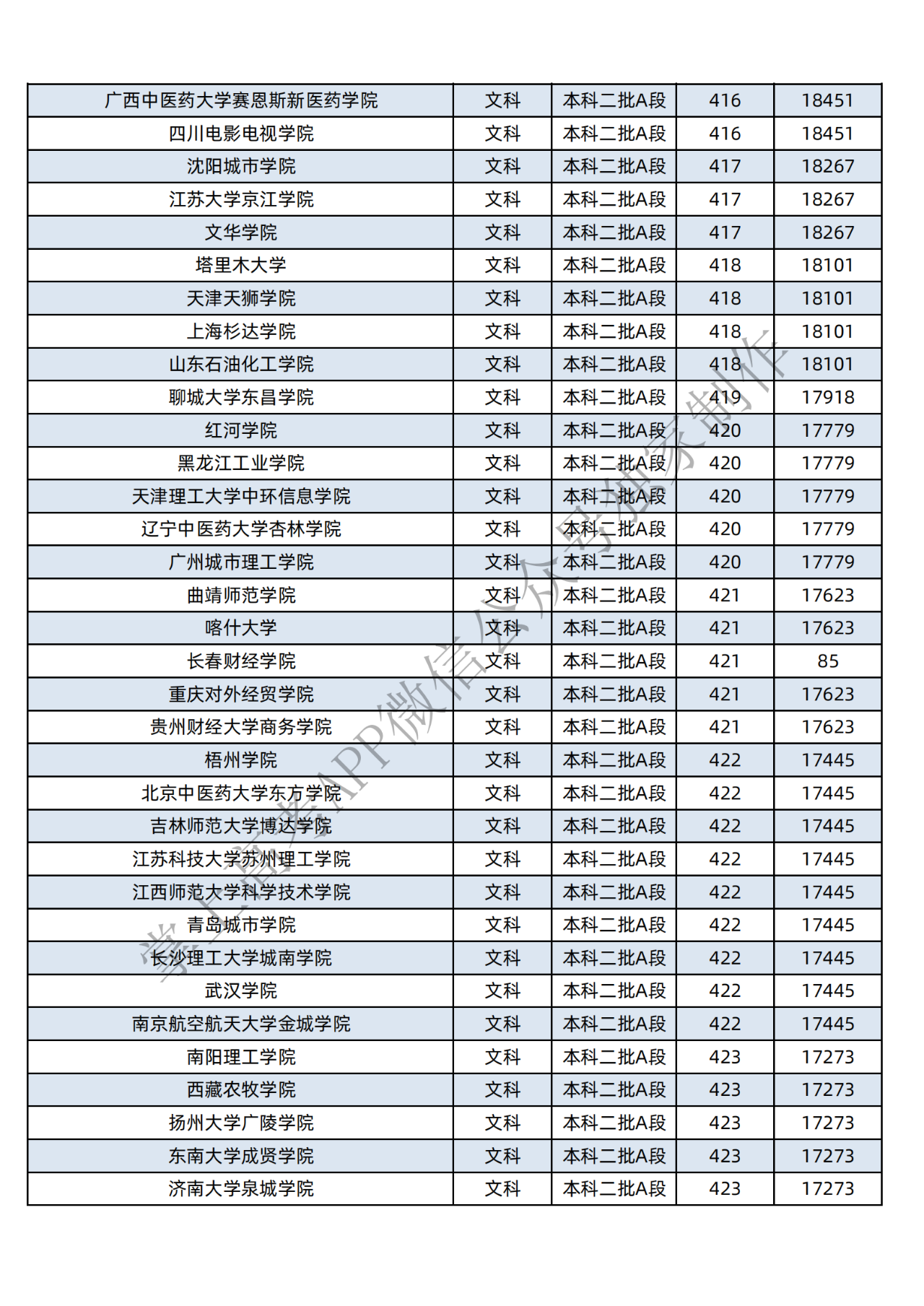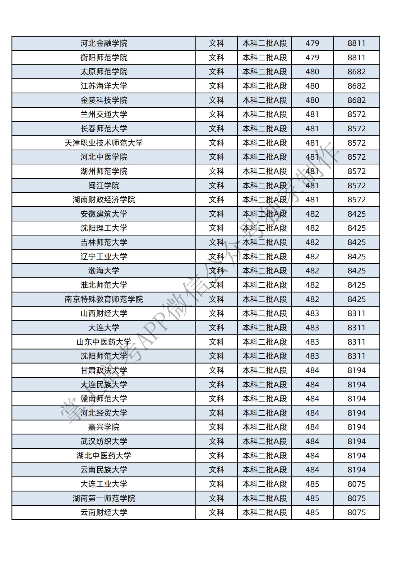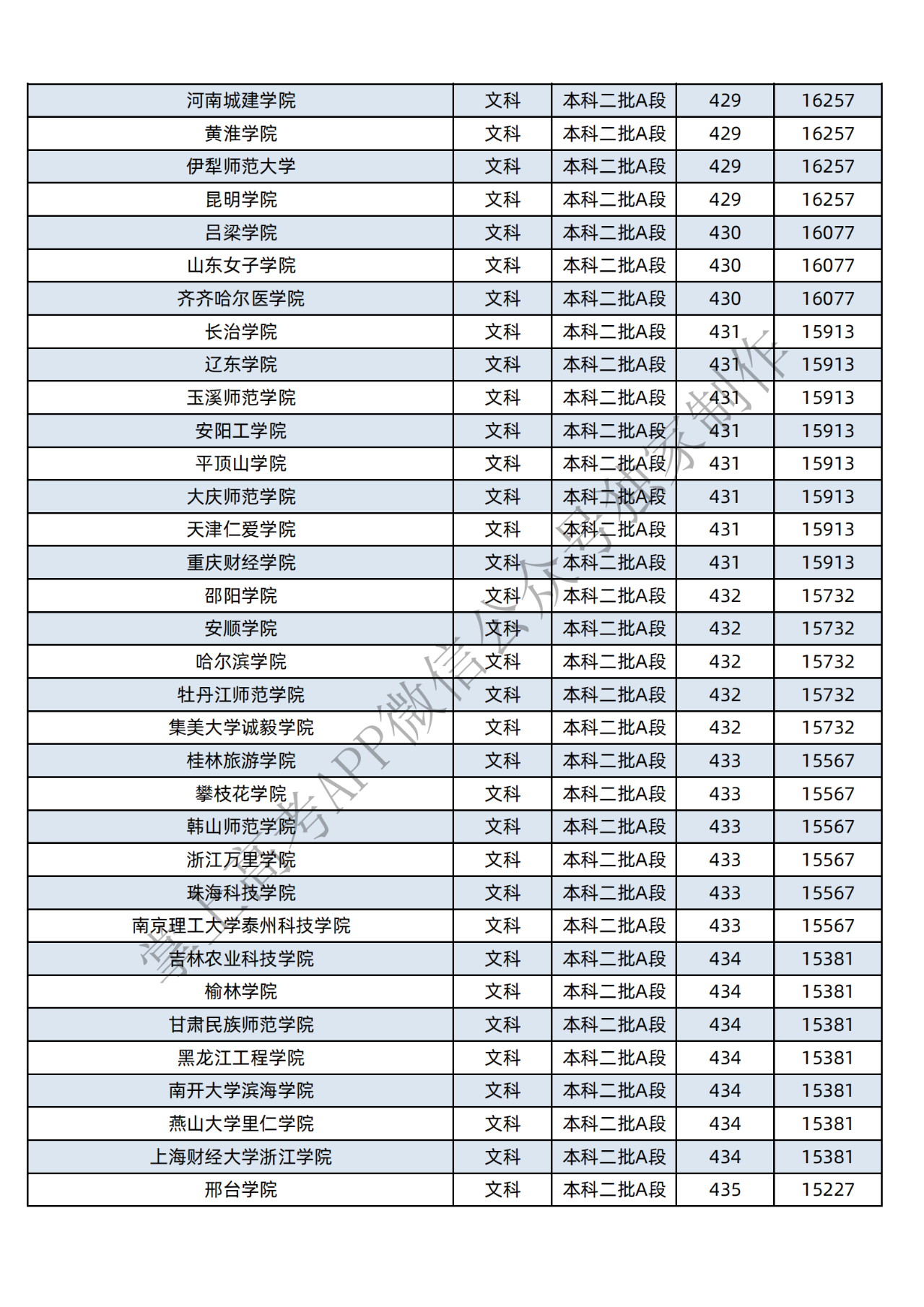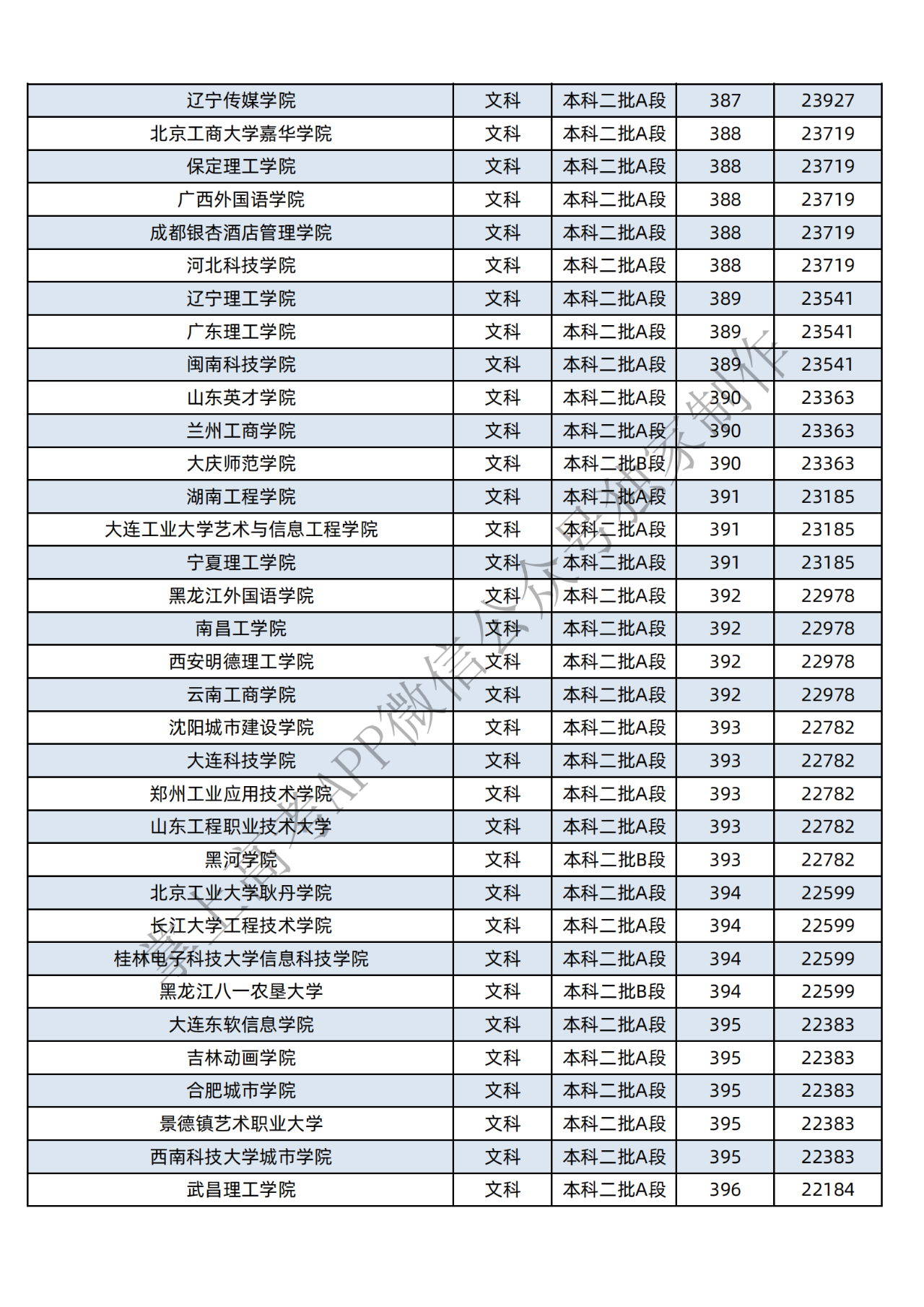 本科二批:文科