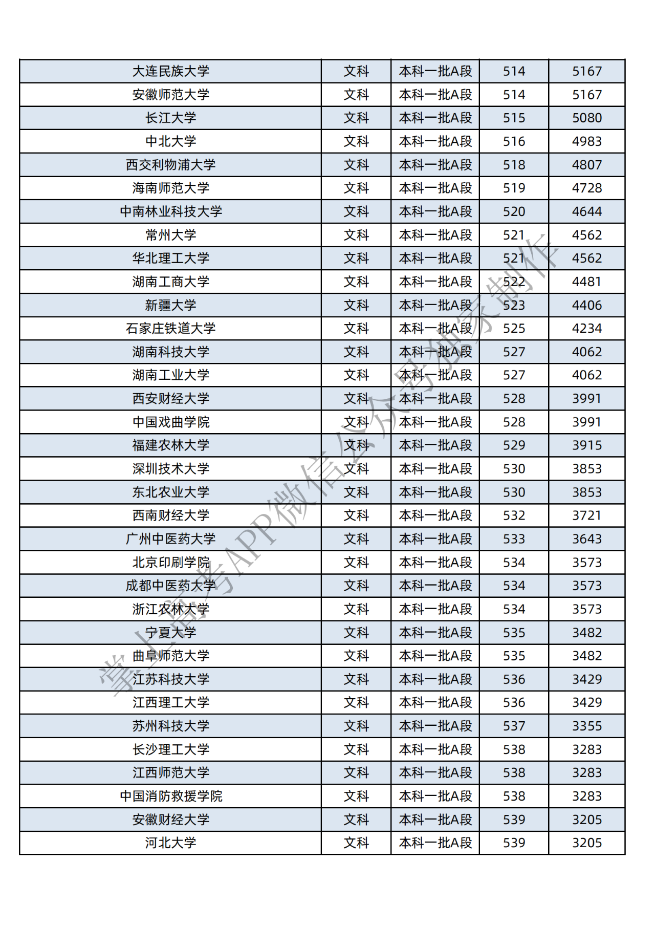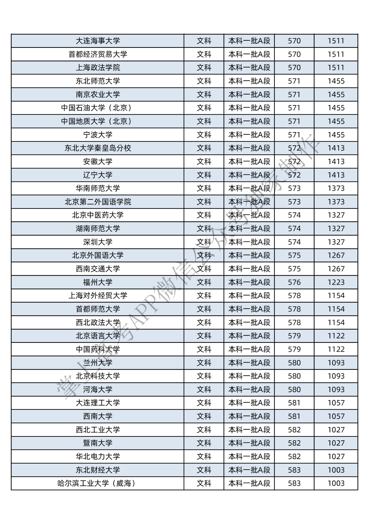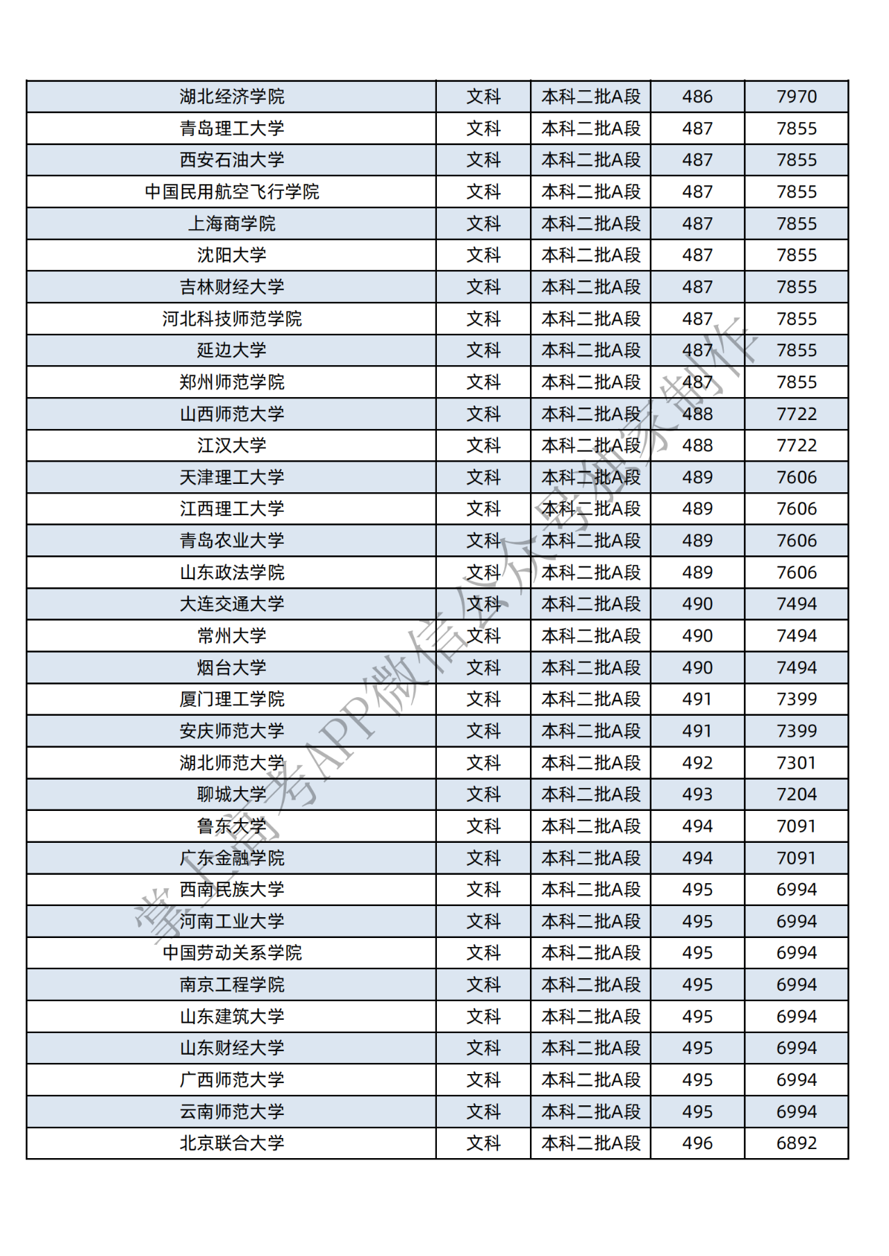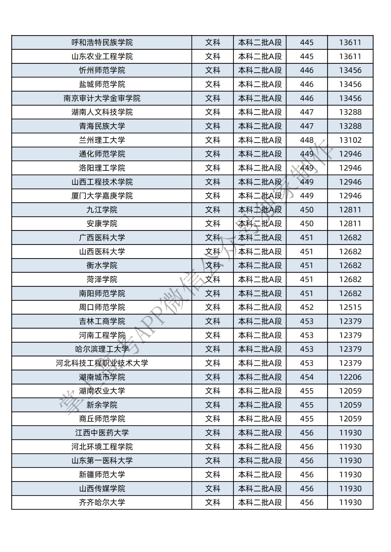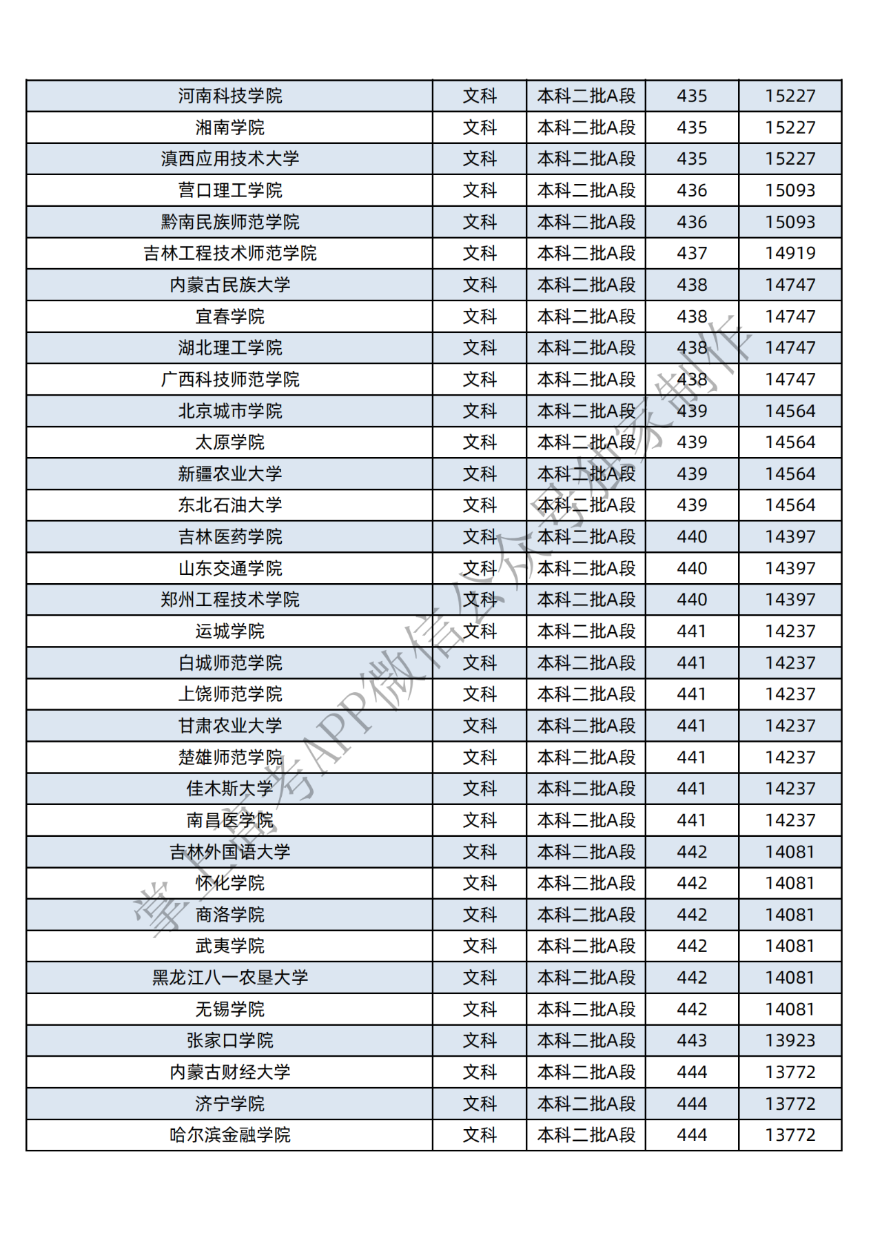 本科二批:文科