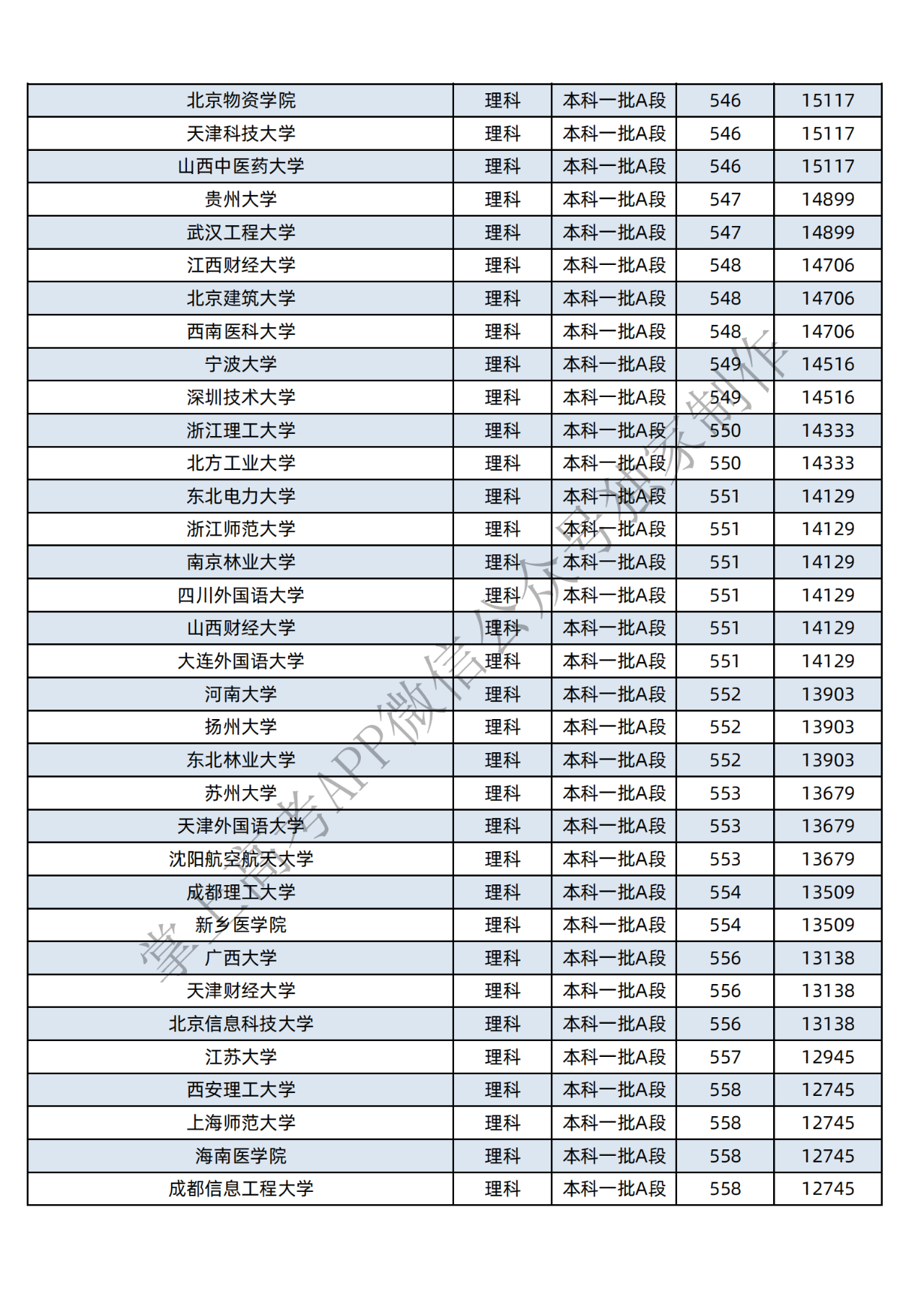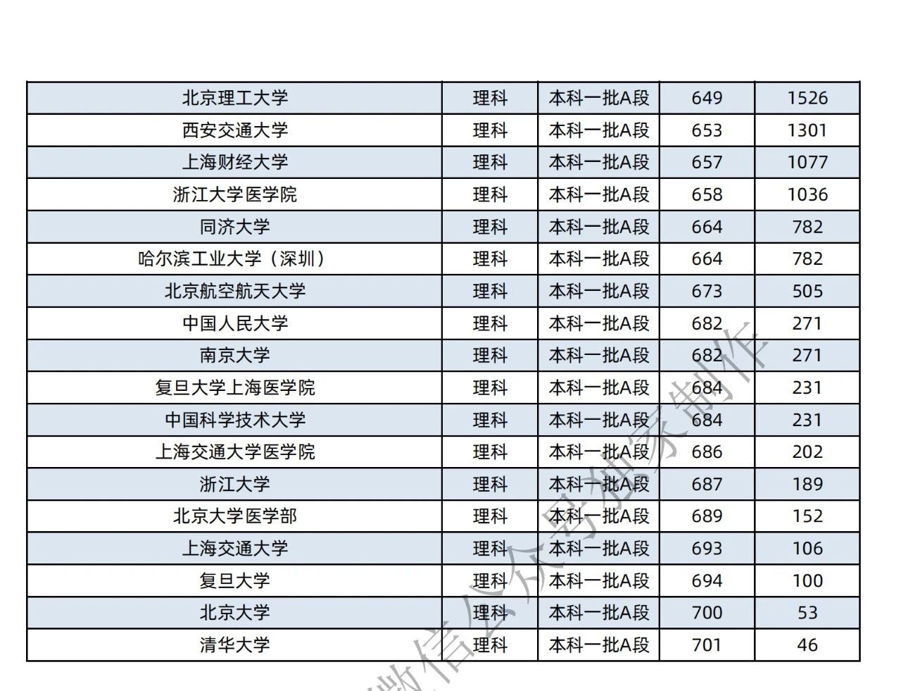 本科一批:理科