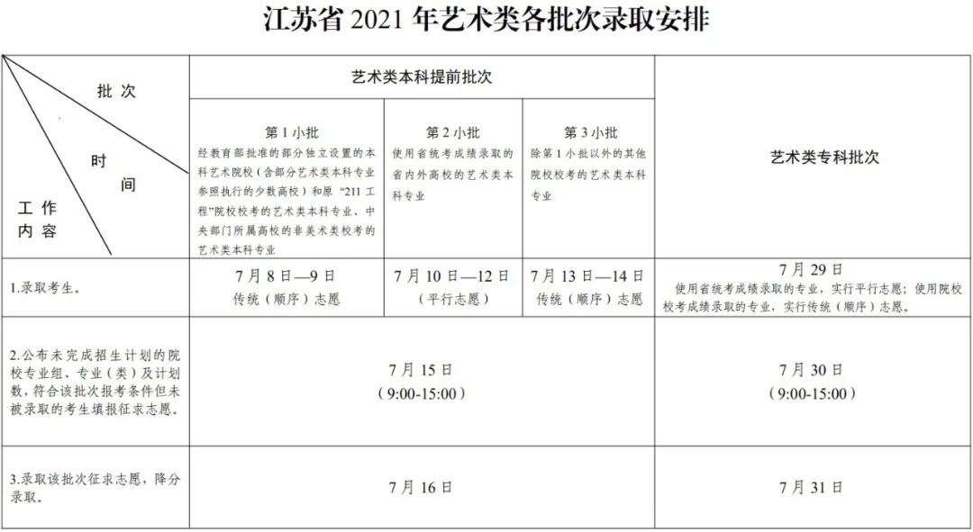 江苏2021年普通高校招生各批次录取时间安排表出炉!