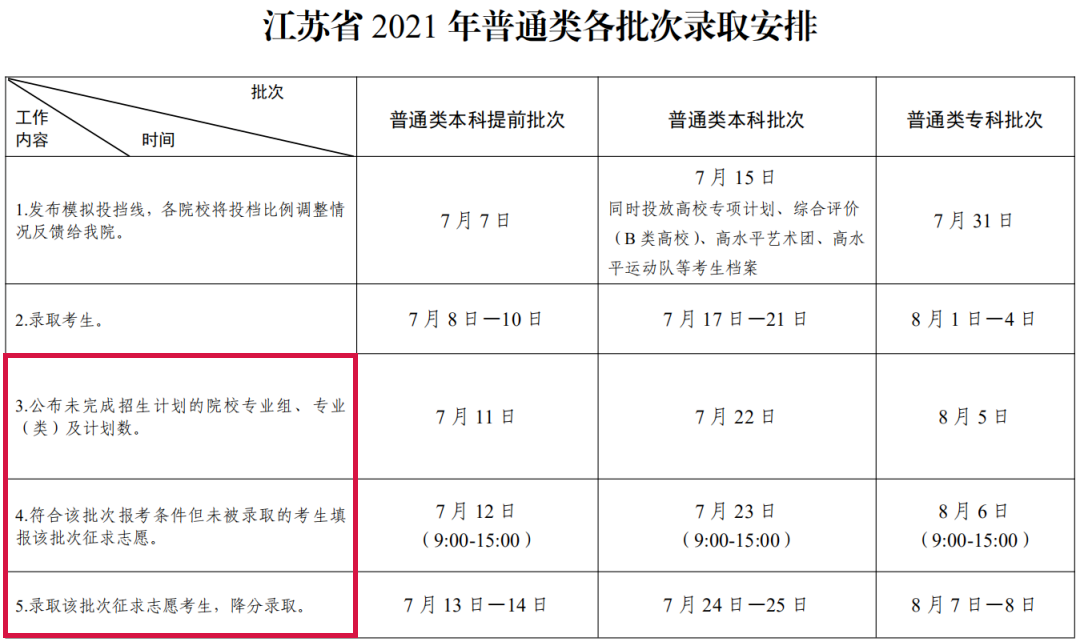 7月19日-8月1日,本科普通批次院校录取(包括2次征求志愿)。