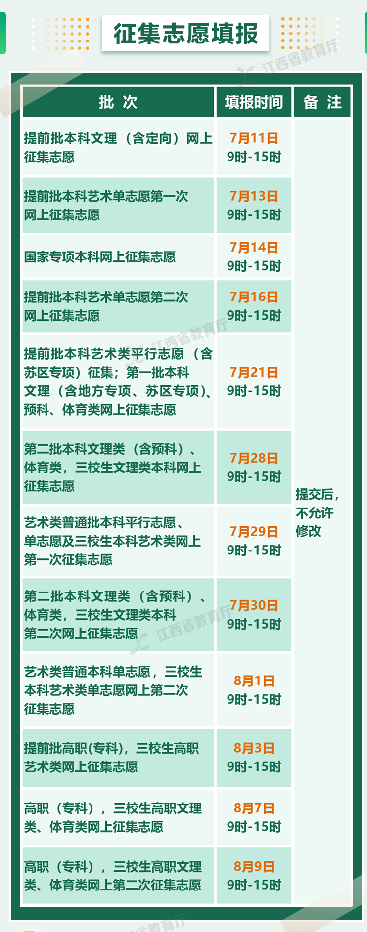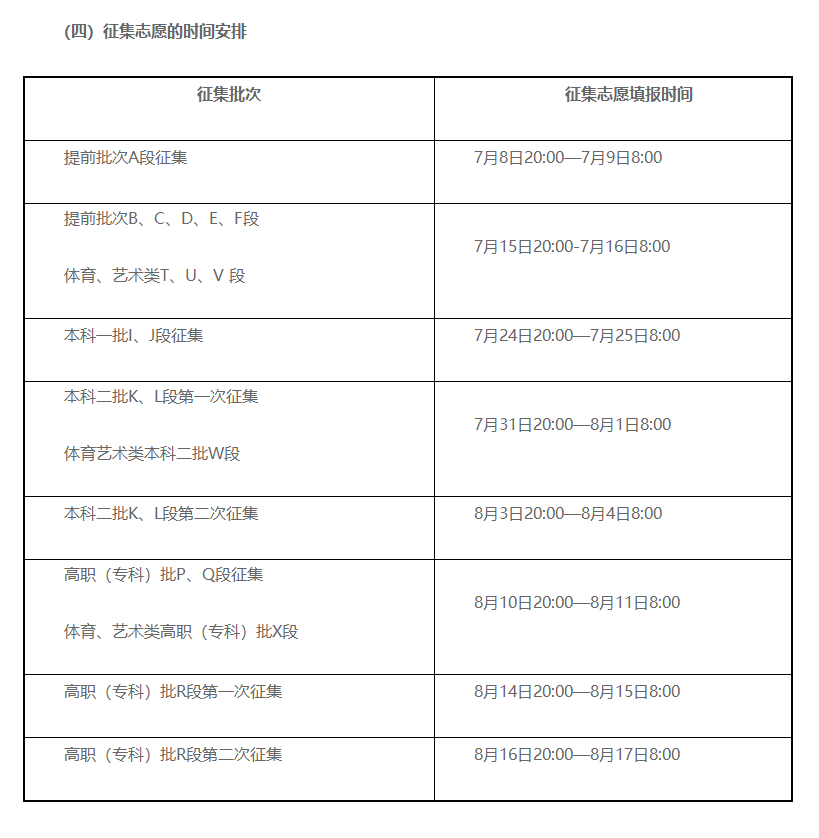 7月30日18:00至8月1日,第一阶段、第二阶段院校“征集志愿”补充录取。