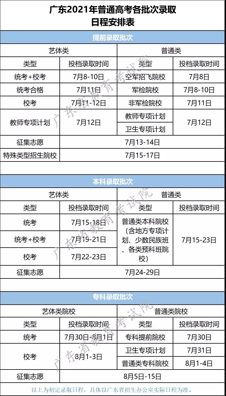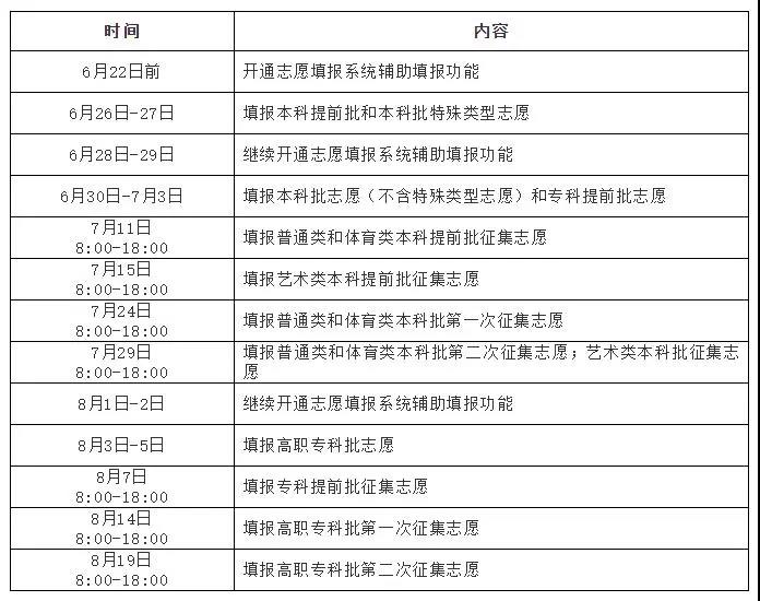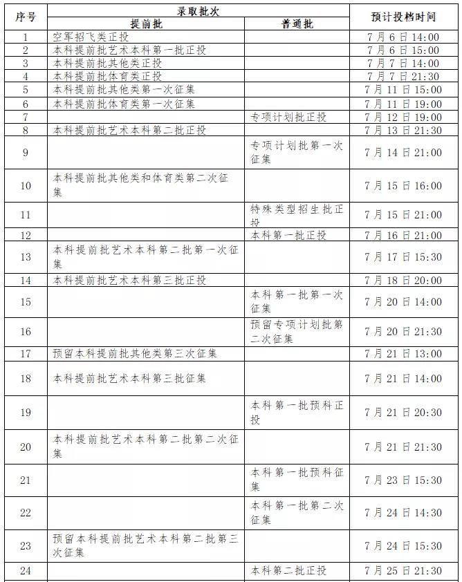 2.高职(专科)批院校录取:7月25日至8月1日。
