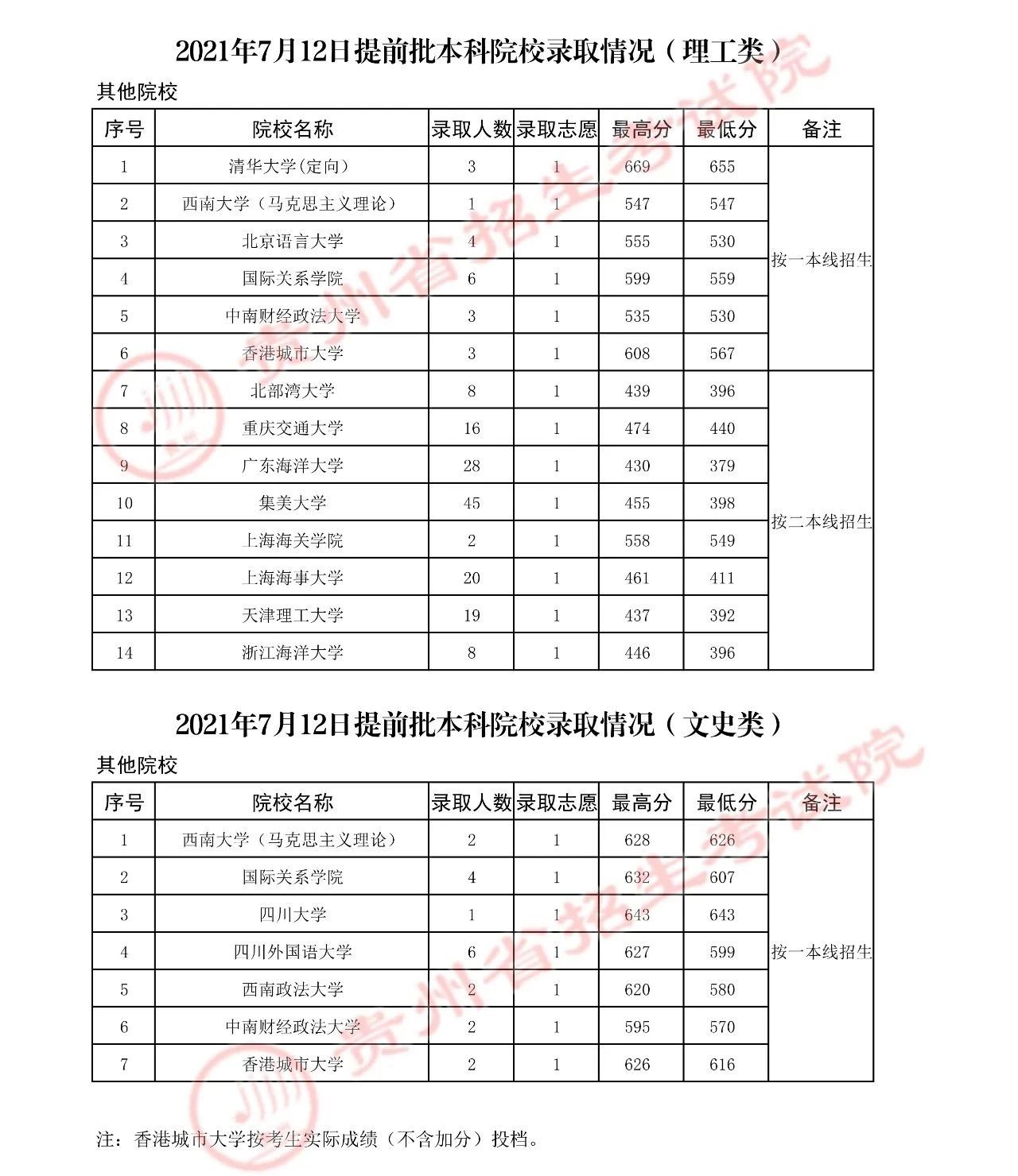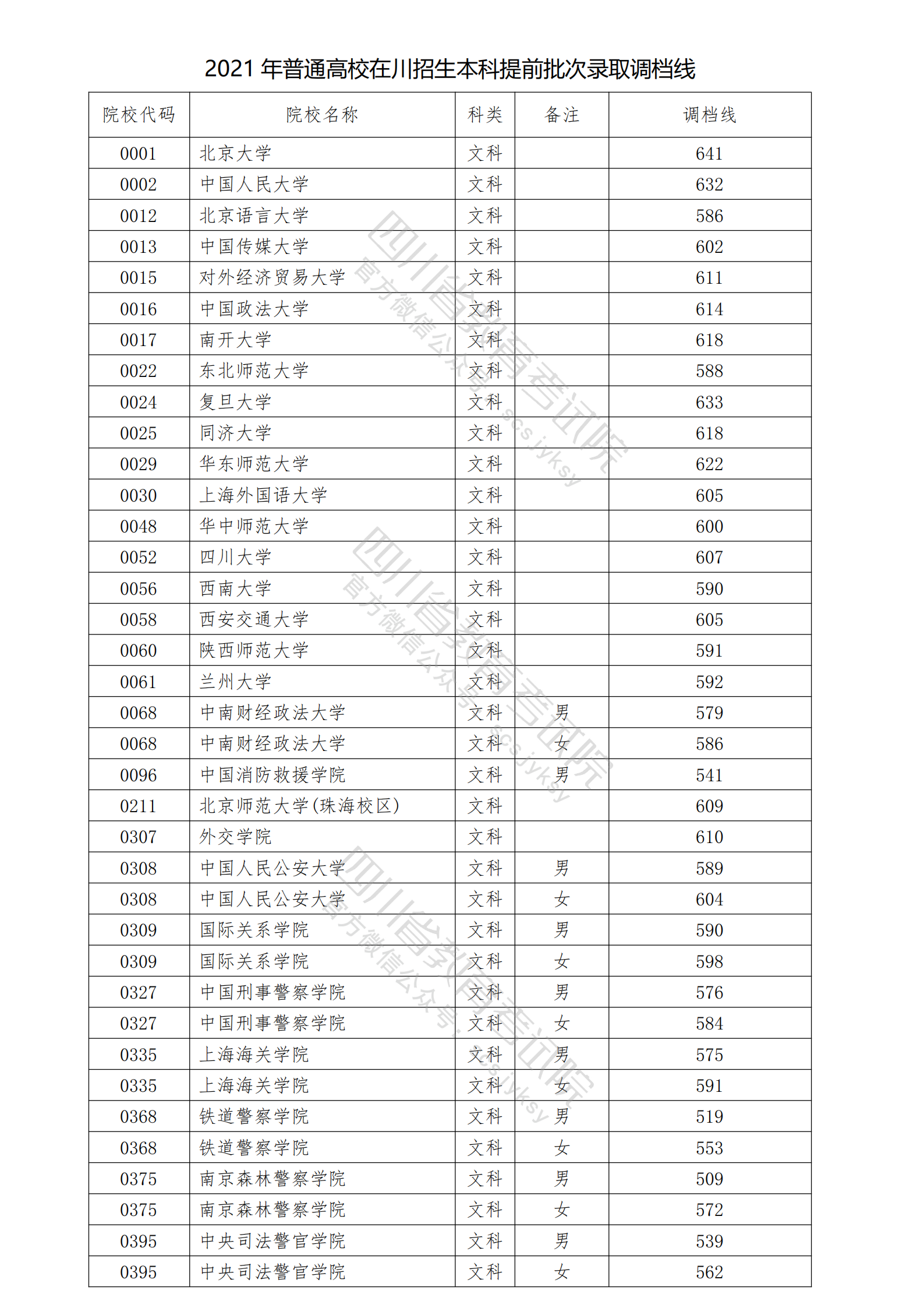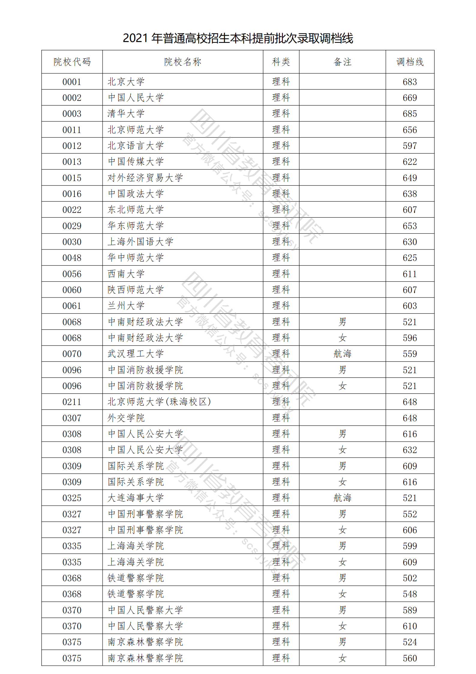 四川省2021年普通高校本科提前批次正在投档录取中,现将在川招生普通高校录取调档线公布如下。