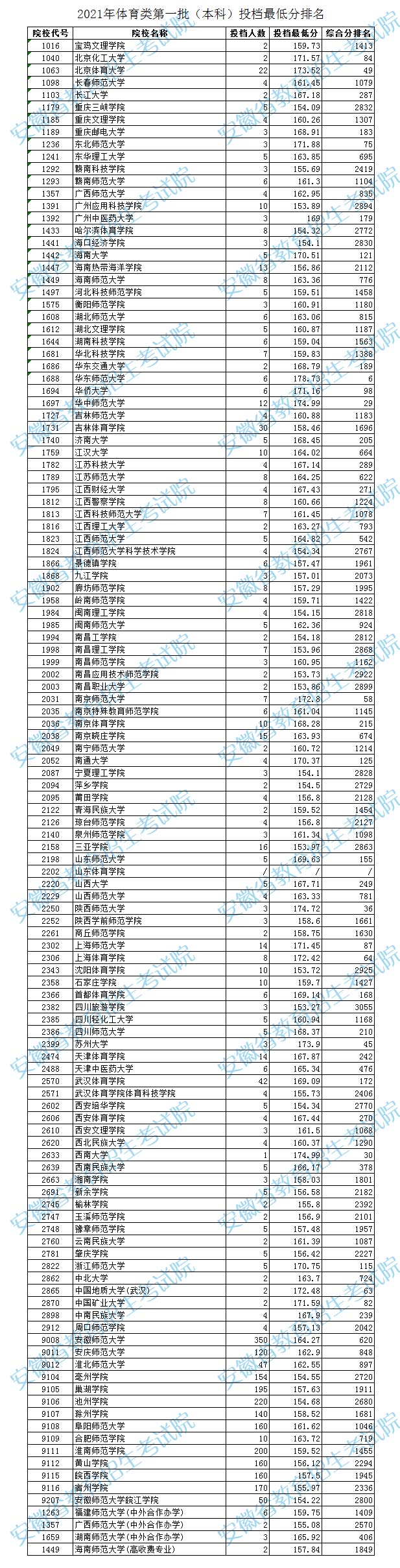 安徽发布2021年体育类第一批(本科)投档最低分排名: