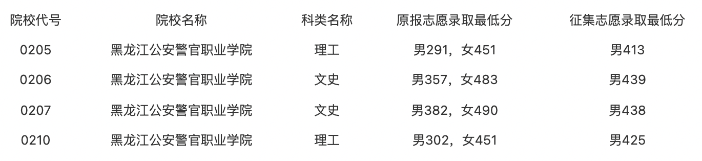黑龙江发布2021年普通高校公安专科院校录取最低分数线(二):