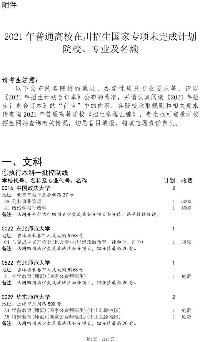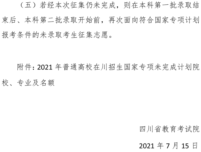 四川:关于国家专项计划录取院校未完成计划征集志愿的通知