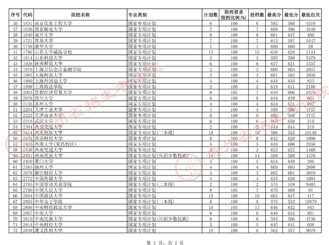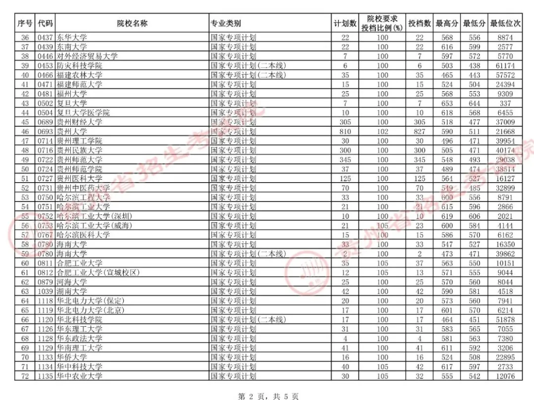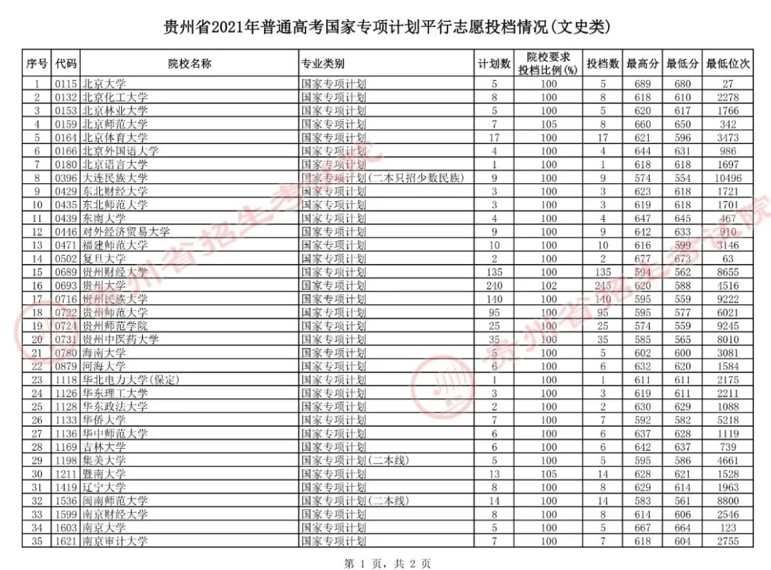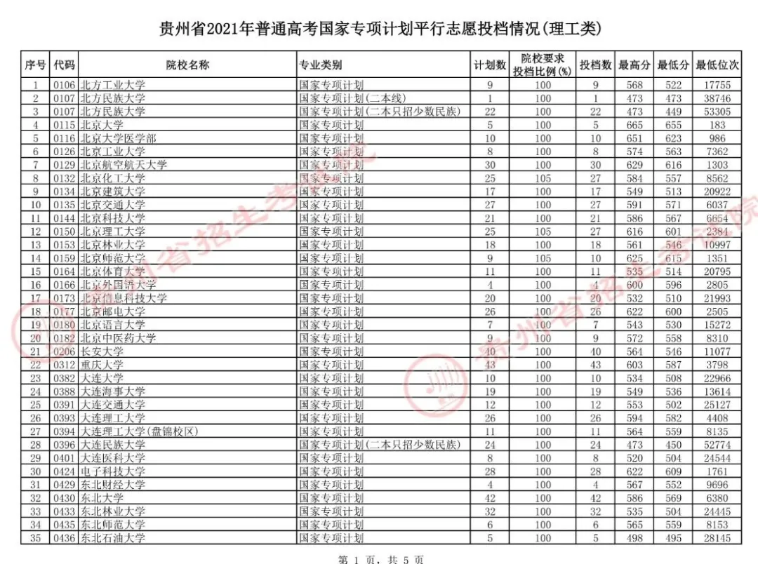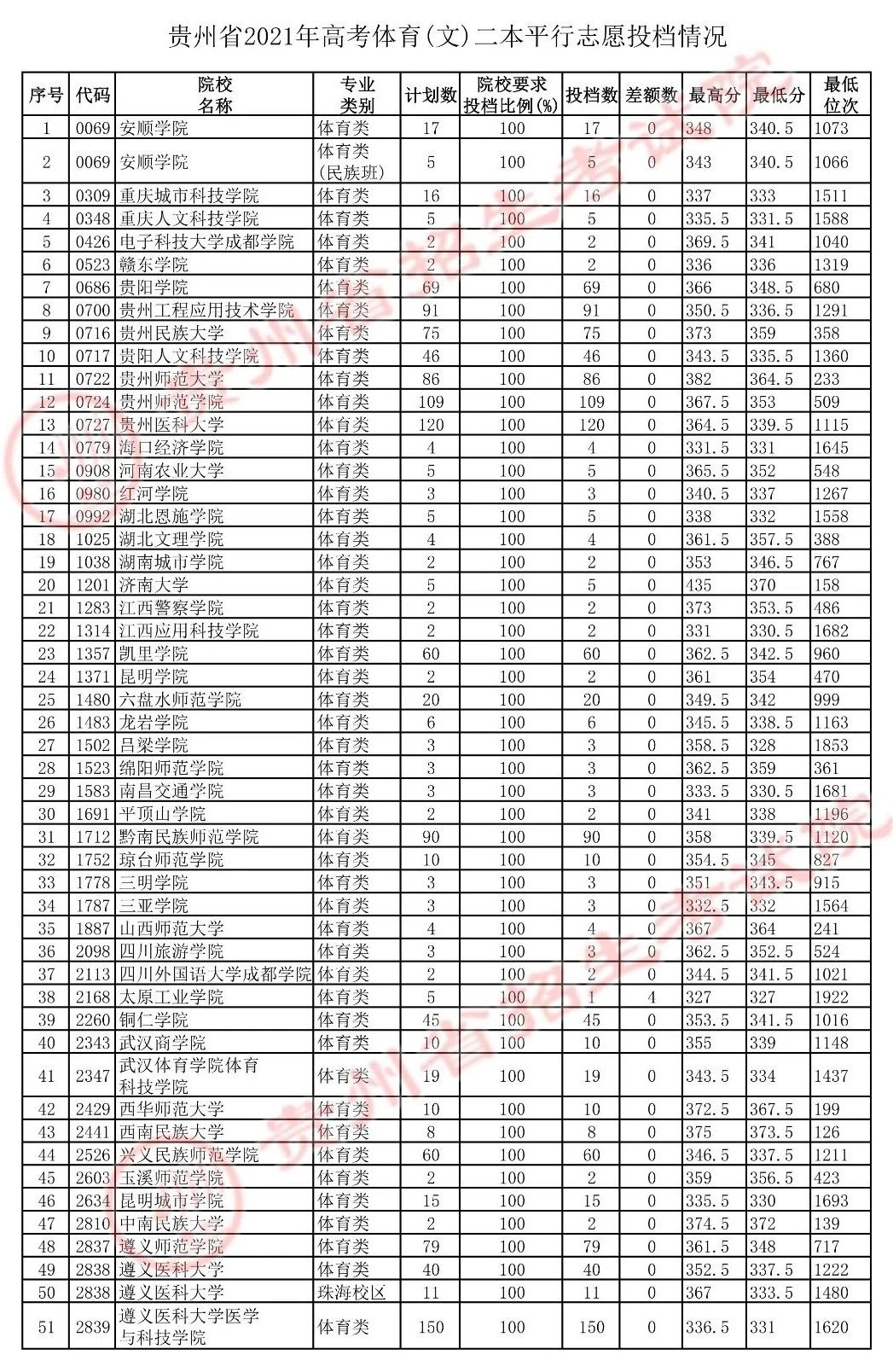 贵州2021高考各批次投档情况:7月15日高考体育二本平行志愿投档情况:7月15日高考国家专项计划平行志愿投档情况7月14日高考艺术类本科院校平行志愿投档情况: