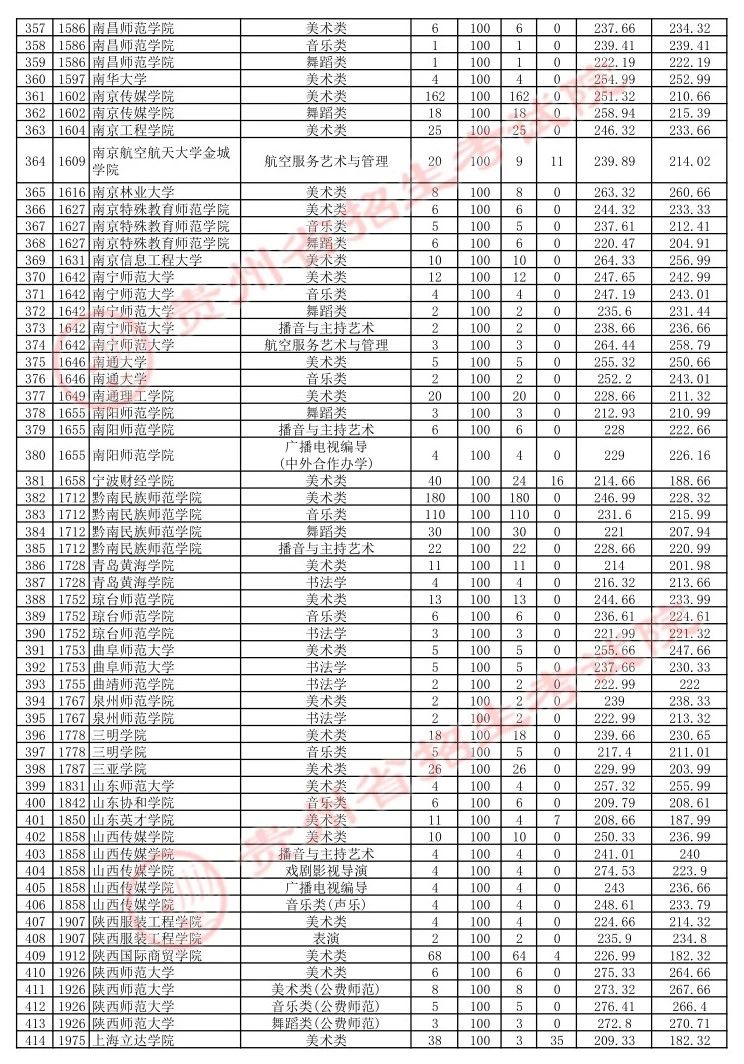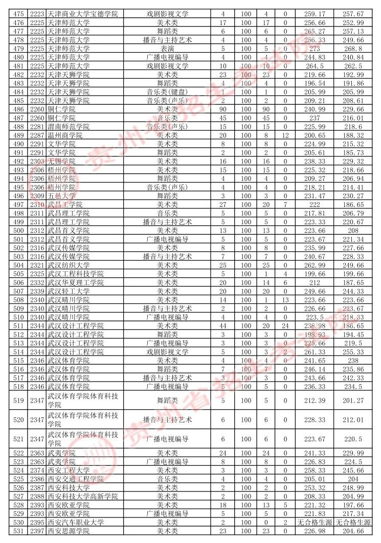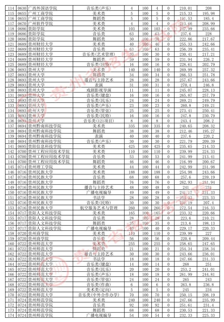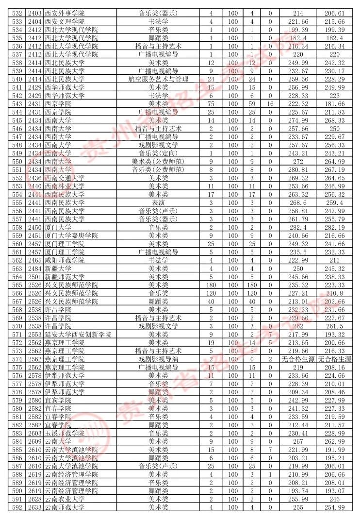 贵州省2021高考艺术类梯度志愿本科院校录取情况:
