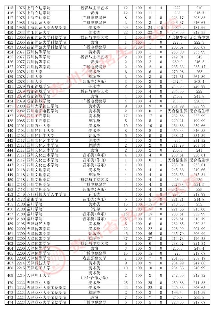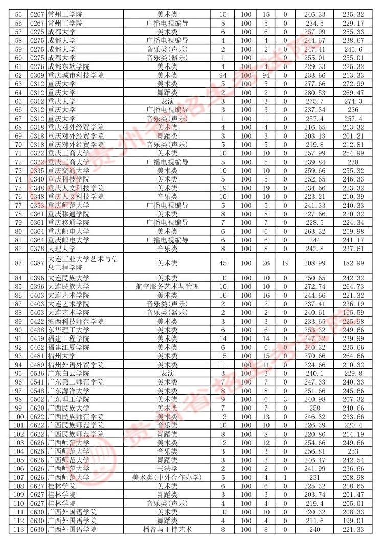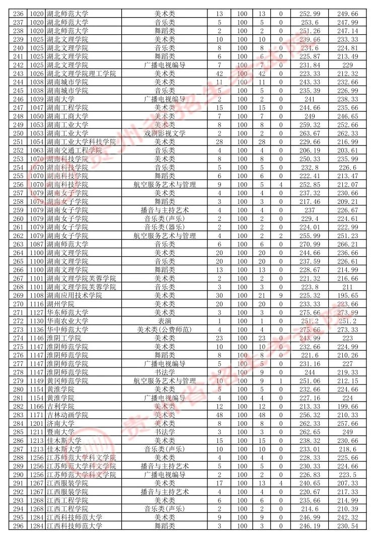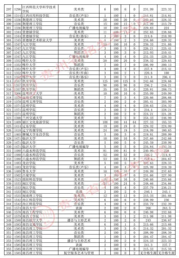 贵州省2021高考艺术类梯度志愿本科院校录取情况: