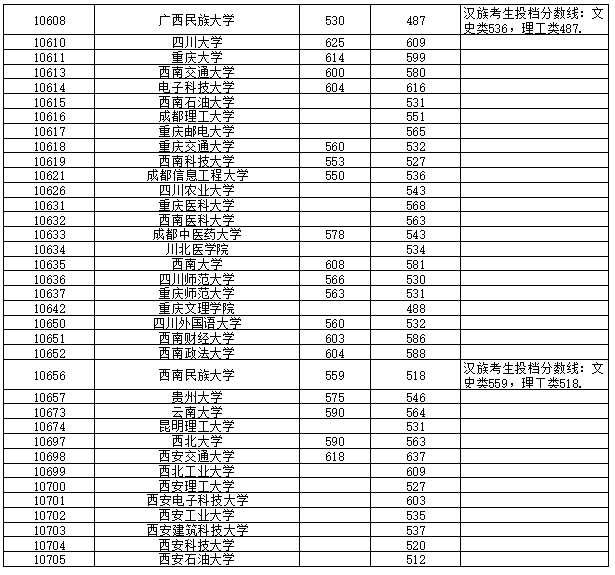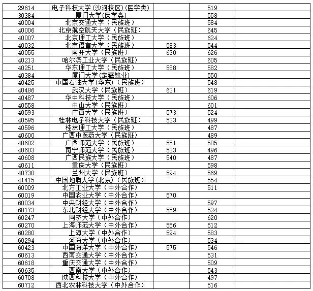 广西:2021年普通高校招生本科第一批最低投档分数线