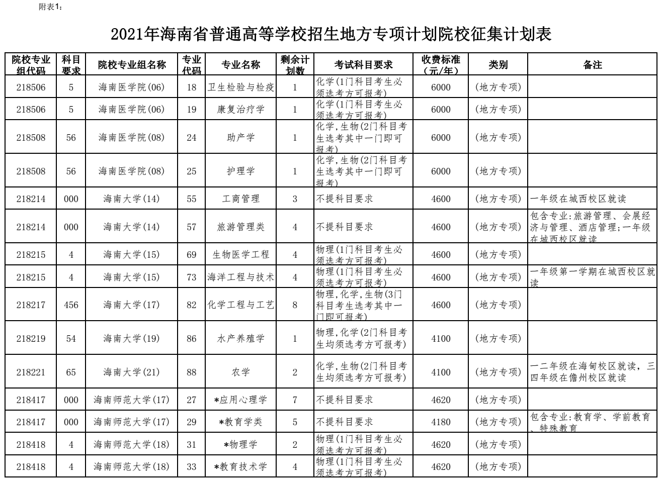 海南:2021年高招地方专项计划录取院校征集志愿的公告