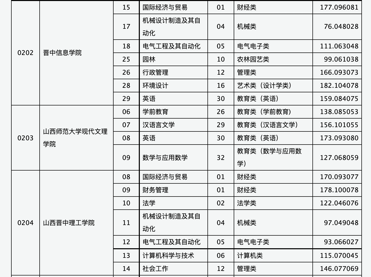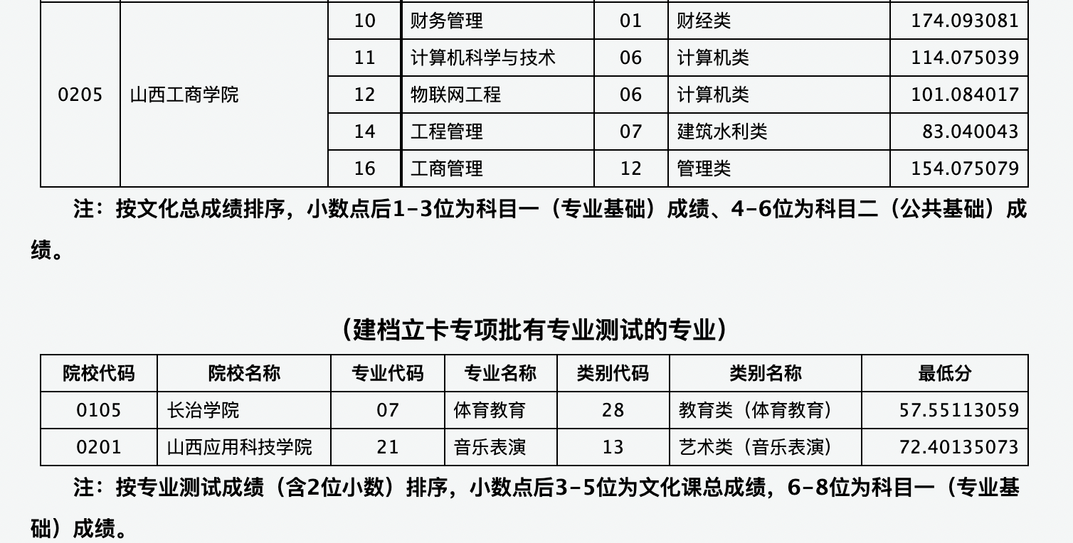 ⼭⻄省2021年普通⾼校专升本选拔考试服义务兵役提前批、建档⽴卡专项批院校征集志愿公告(⼆)投档最低分: