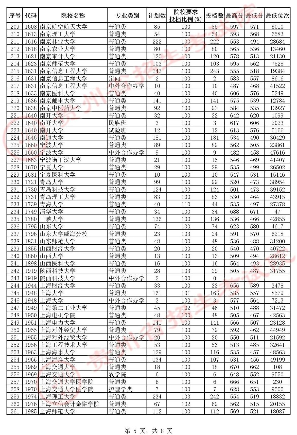 贵州7月22日高考第一批本科院校平行志愿投档情况理科12345678文科 91011121314