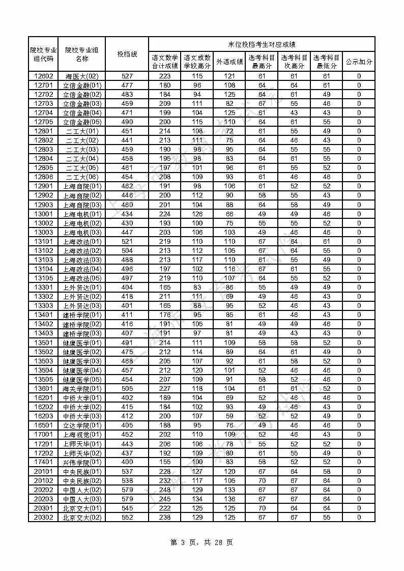 为贯彻落实教育部关于做好普通高考招生录取工作的有关要求,积极营造尊重考生兴趣选择的良好导向,避免发生炒作高分段考生投档情况等现象,本市自2020年起不再分校公布本科普通批次高分段院校专业组投档线。2021年对此类投档线继续统一表述为“580分及以上”,相关院校专业组包括:复旦大学(01)、复旦大学(02)、复旦大学(03)、复旦大学医学院(01)、上海交通大学(01)、上海交通大学医学院(01)、中国人民大学(01)、中国科技大学(01)等8个专业组。